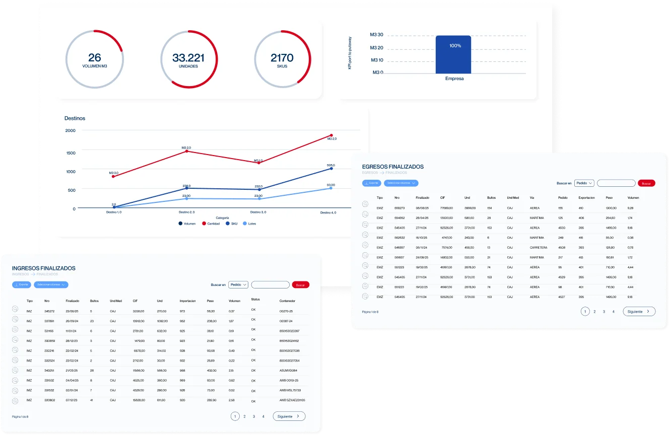 Disponemos de integraciones API/EDI que permiten una conexión ágil con los sistemas de nuestros clientes. Además ofrecemos dashboards personalizados que brindan transparencia sobre el nivel de cumplimiento del servicio.