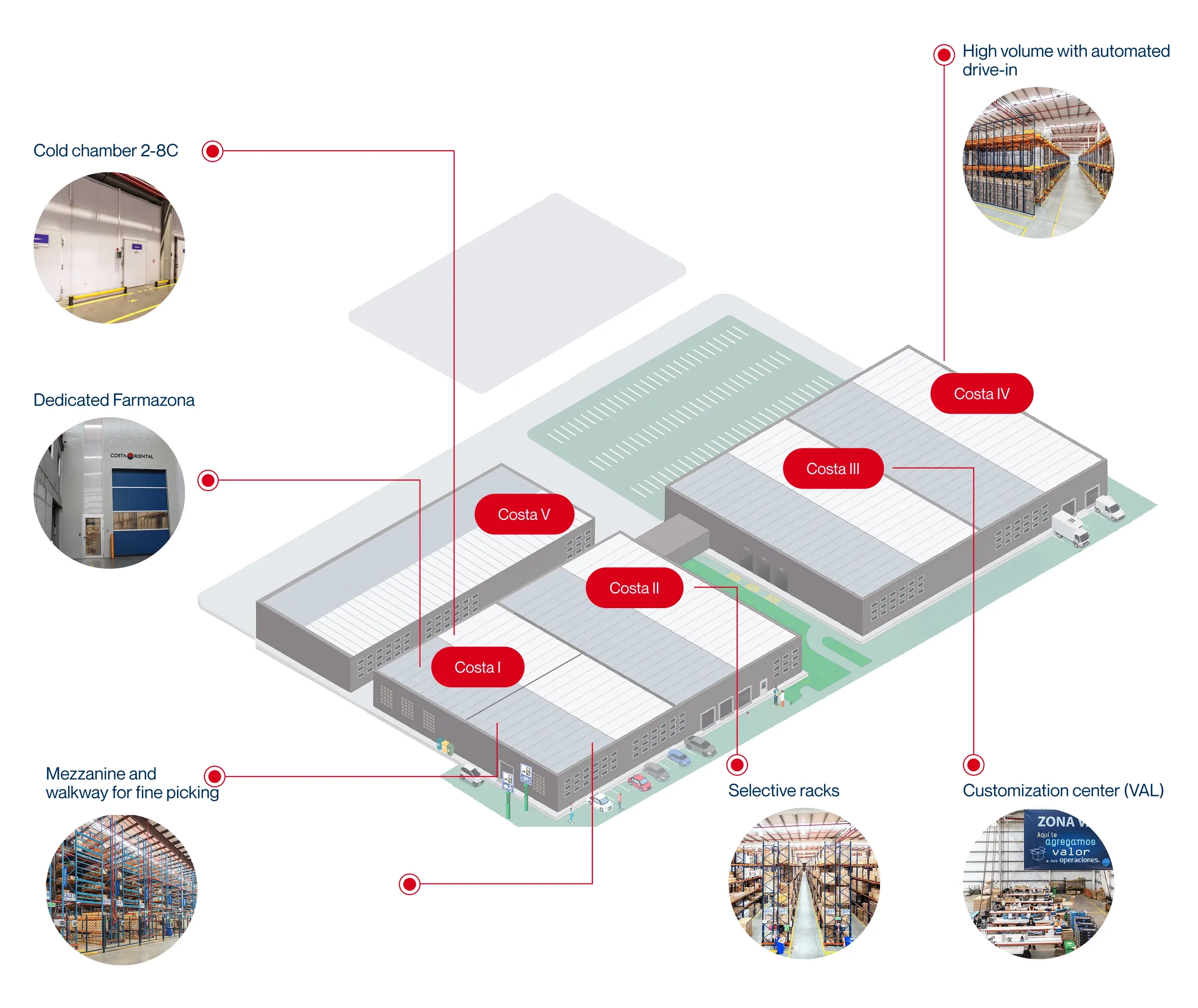 Flexible and secure spaces, with specific solutions for different sectors such as pharma, cosmetics, industrial products, mass consumption, among others. We offer the option for both large volume operations as well as those requiring intensive picking.